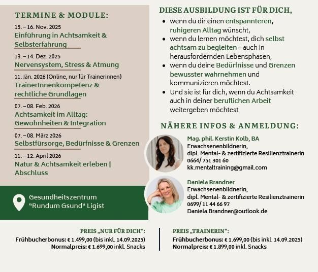 - Und sie ist für dich, wenn du Achtsamkeit auch in deiner beruflichen Arbeitweitergeben möchtest.