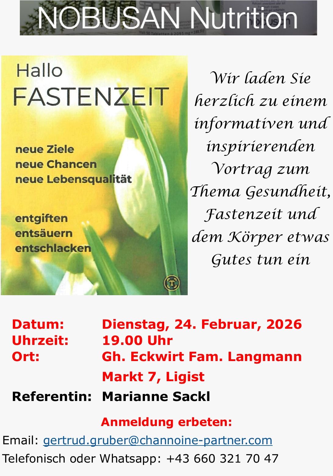 Anmeldung erbeten: gertrude.gruber@channoine-partner.com, 0660/3217047