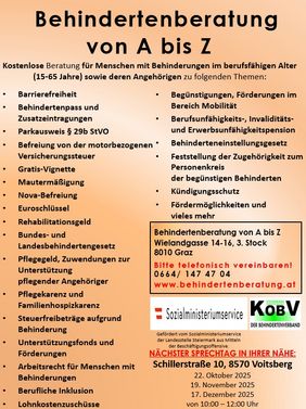 Für Menschen mit Behinderungen im berufsfähigen Alter (15 - 65 Jahre) und deren Angehörige.